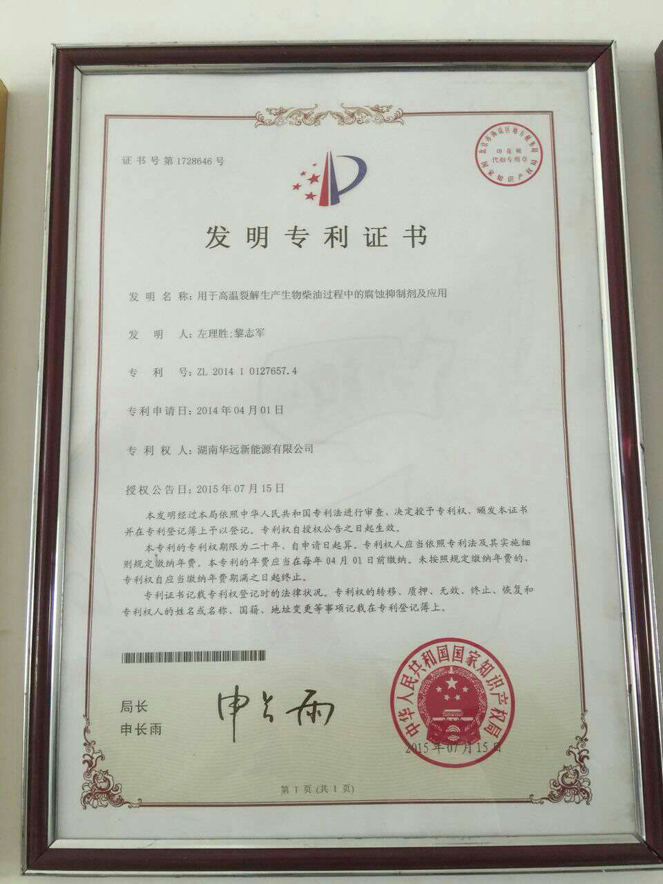 用于高溫裂解生產(chǎn)生物柴油過程中的腐蝕抑制劑及應用